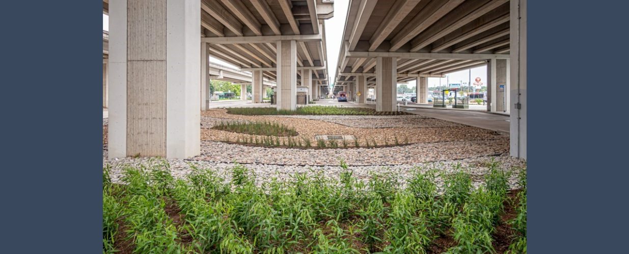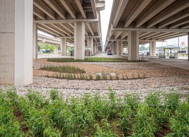 The project is tucked away under the main lanes bridge structure of Ben White Boulevard, entirely within the TxDOT right of way. The project consists of a 10-bay bus transit area, an operator’s restroom facility, and a 203-space park & ride with associated utilities and drainage. The site design incorporates low-impact development features such as direct rainwater irrigation, solar power, and electric vehicle charging stations.